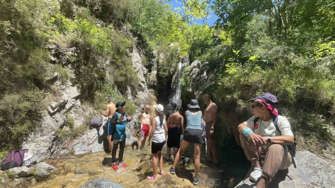 Zorlu parkuru aşan doğaseverler, Kocakesme Şelalesi’nde serinliğe kavuşuyor