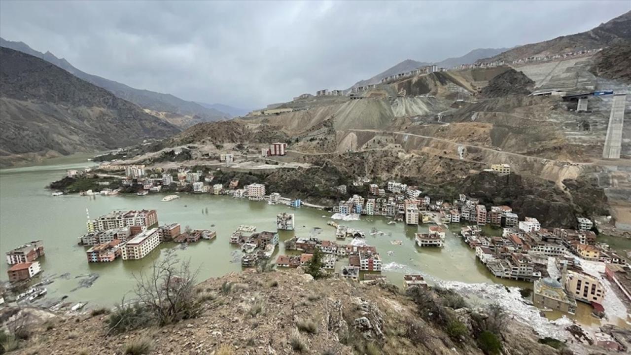 Öte yandan, ilgili firmaya ait iş makineleri yardımıyla, eski ilçe merkezinde henüz su altında kalmayan bazı noktalarda yıkım işlemleri devam ediyor.