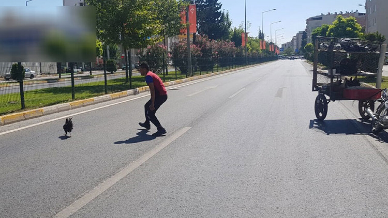 Neye uğradığını şaşıran tavuk, trafiğin yoğun olduğu karayolunda ilginç görüntülere neden oldu. Vatandaşların ikazı ile tavuğun düştüğünü öğrenen motosiklet sahibi, kaçan tavuğun peşinden koşarak yakalamaya çalıştı. Uzun süre tavuğu kovalayan vatandaş büyük çaba sarf etti. Karayolunda araç tehlikesine rağmen süren kovalamaca ilginç görüntülere sahne oldu.