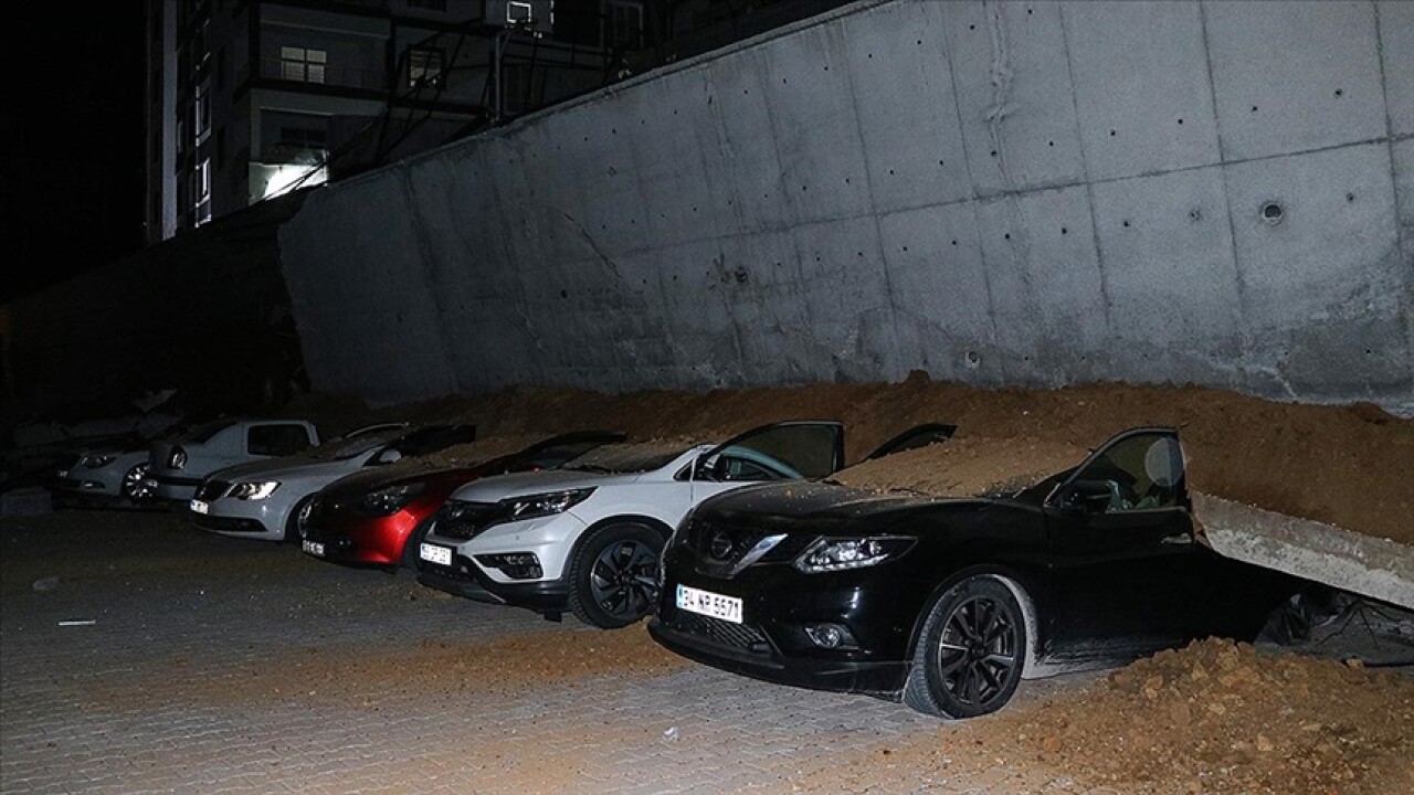 Çapanoğlu Mahallesi Aynalı Körük Sokak'ta Ravza Apartmanı'nın istinat duvarı park halindeki 11 aracın üzerine çöktü.