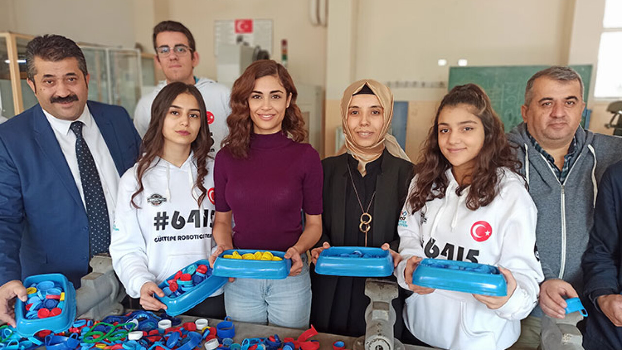 Melekler Kahvesi ve Gültepe Mesleki ve Teknik Anadolu Lisesi işbirliğinde yürütülen kapakları hayvan mamalarına ve su kaplarına dönüştürme sosyal sorumluluk projesine ünlü isimlerden yoğun ilgi devam ediyor. Bunlardan biri de Sevcan sini oldu.