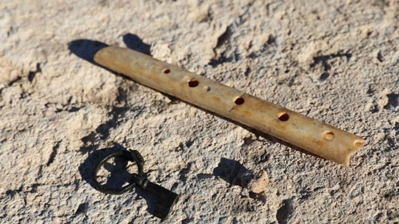 İki parça halinde bulunup birleştirilen flütün, küçükbaş hayvanın bacak kemiği üzerine yuvarlak delikler açılarak yapıldığını anlatan Coşkun, yüzeyinde biri kırık altı delik olduğunu, milattan sonra 4-5. yüzyıla tarihlendirildiğini belirtti.
