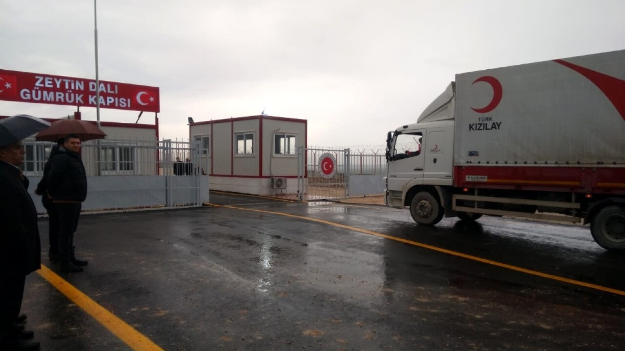Hatay ile Suriye arasında ticari sınır bağlantısını oluşturacak olan Zeytin Dalı Gümrük Kapısı, ilk olarak insani yardım tırlarının geçişiyle faaliyete açıldı. Geçişi yapılan tırlarda, kabin kontrol ve şoför kimlik bilgisi işlemlerinin ardından, ağırlık kontrolü ve tescil gümrük işlemleri gerçekleştirildi. Tırlar daha sonra kaçak istihbarat müdürlüğü ekiplerine bağlı 'Bambi' isimli bomba ve patlayıcı uzmanı köpek tarafından yapılan aramanın ardından X-raydan geçerek gümrük geçişleri sağlandı. Sınır kapısında 30 gümrük muhafaza memuru, 23 idareci ve gümrük personeli görev alıyor.