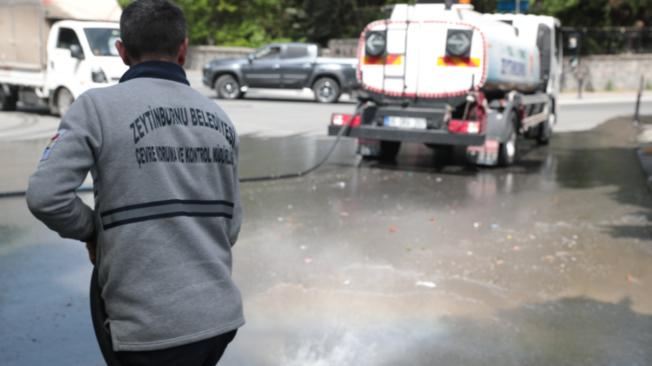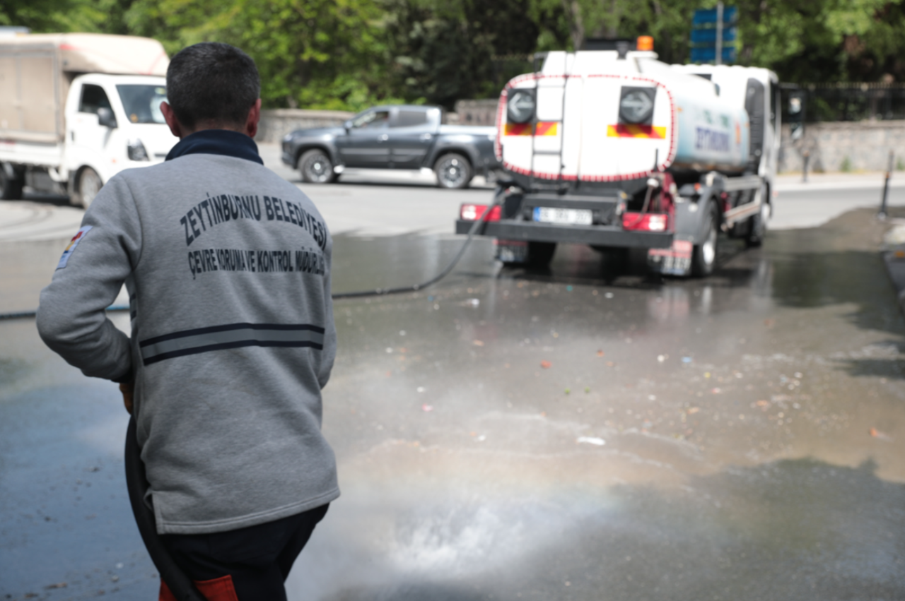 Zeytinburnu Belediyesi Çevre Koruma ve Kontrol Müdürlüğü temizlik ekiplerinin ihtiyaca göre ilçenin mahallelerinde yürüttüğü detaylı temizlik çalışmaları vatandaşlardan büyük övgü alıyor. Yaz dönemi genel temizlik çalışmaları çerçevesinde; sokak süpürme araçlarıyla sokaklar detaylı bir şekilde süpürülürken, tankerler ise ihtiyacı olan noktaların yıkamasını yapıyor.