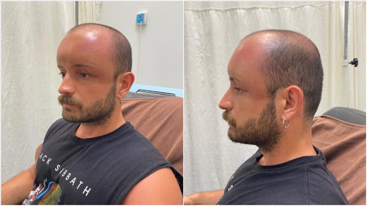 İstanbul'dan tatil için Zonguldak'a gelen ve iki gün üst üste nemli ve sıcak havada denize giden 33 yaşındaki Caner Arık, 23 Ağustos'ta kafasında büyük şişlik oluştuğunu fark etti.
