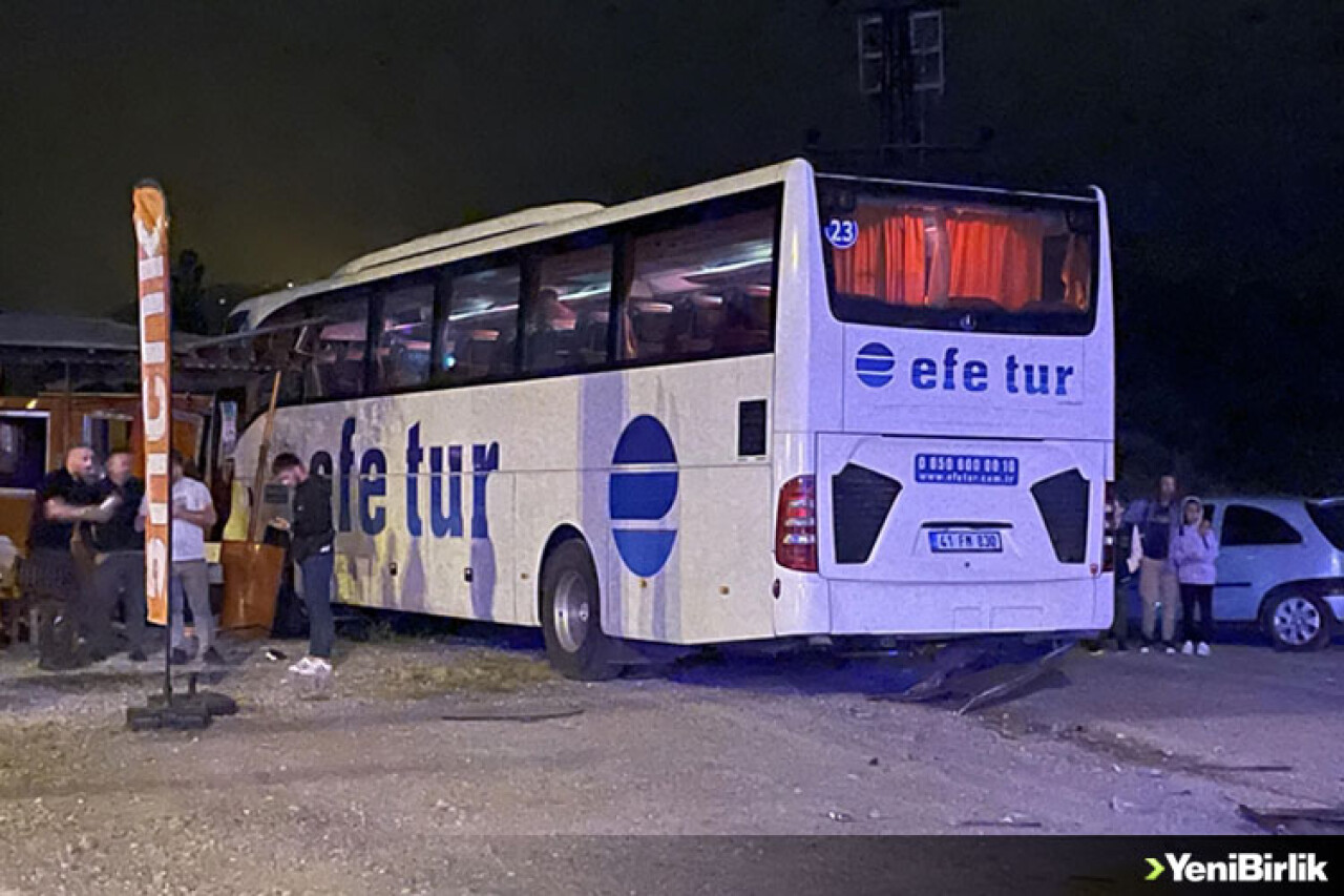 Çarpışmanın etkisiyle yolcu otobüsü yol kenarında bulunan restorana çarparak durabildi.
